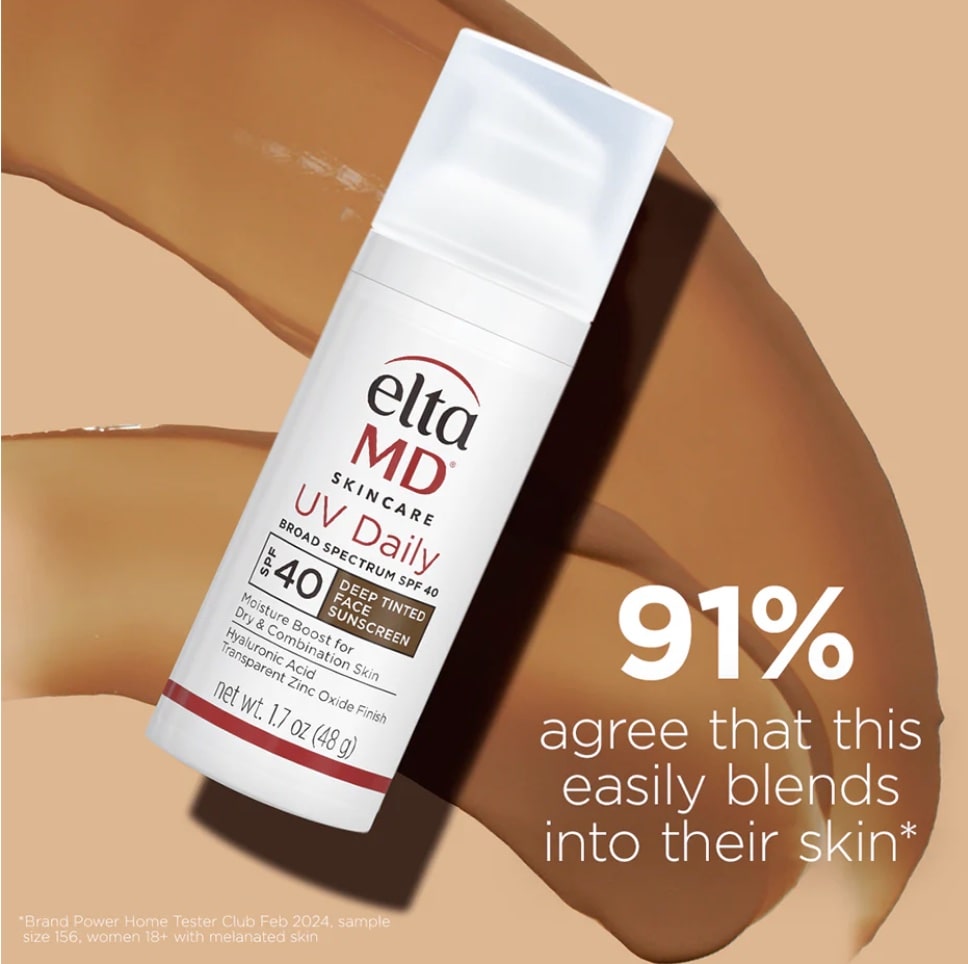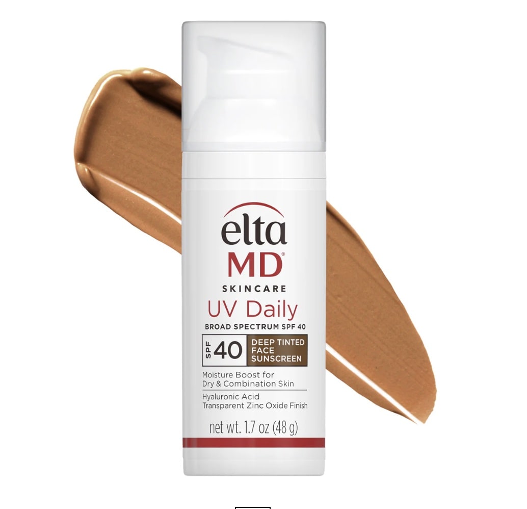 EltaMD UV Daily Deep Tint SPF 40 is a sheer, lightweight facial sunscreen for deeper skin tones that protects against damaging UVA and UVB rays to help combat the visible signs of aging. Designed and tested on deeper skin tones, it is formulated with our Invisible Blend Technology that blends in sheer for a no white cast finish.
