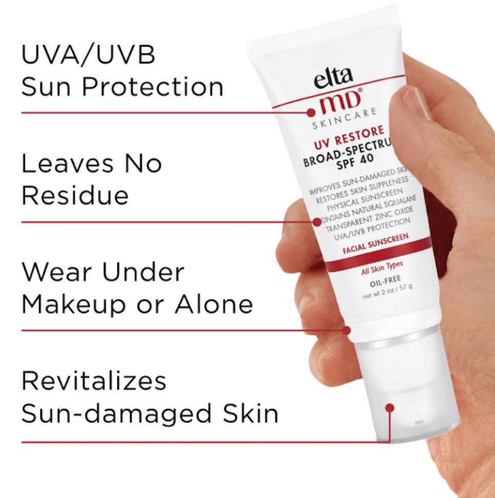EltaMD UV Restore SPF 40 is more than just a sunscreen—it’s a skin-repairing powerhouse. This all-mineral formula provides broad-spectrum UVA/UVB protection while visibly improving signs of sun damage like discoloration, fine lines, and dullness.