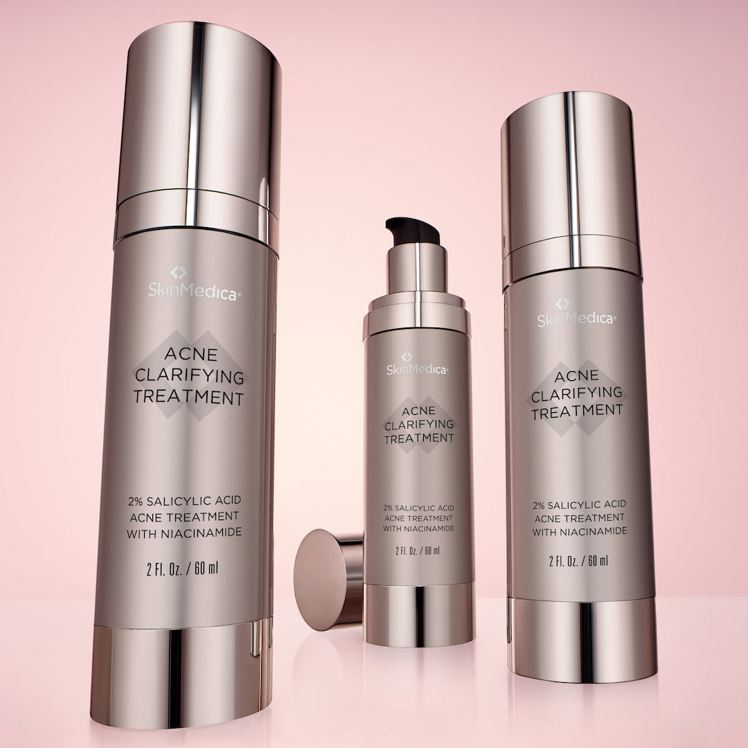 New from SkinMedica: this treatment serum fights acne, reduces post-acne marks, and reinforces the skin barrier for clear, healthy-looking skin. Clinically proven to reduce acne, visible redness and oiliness for all skin tones and types in just 24 hours. Visibly fade post-acne marks (PIH/PIE) as early as 48 hours after beginning use.